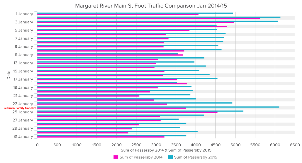 It is clear that we’re off to a much better start for 2015 than 2014 with visitation to the Main Street of Margaret River and MRCCI are looking into the possible reasons why. For starters, the standout Leeuwin Family Concert and the WA Circus Festival appear to have attracted thousands more people to Main Street on the weekend of the events. Members, stay tuned. Download PDF: [download id=”37124″]