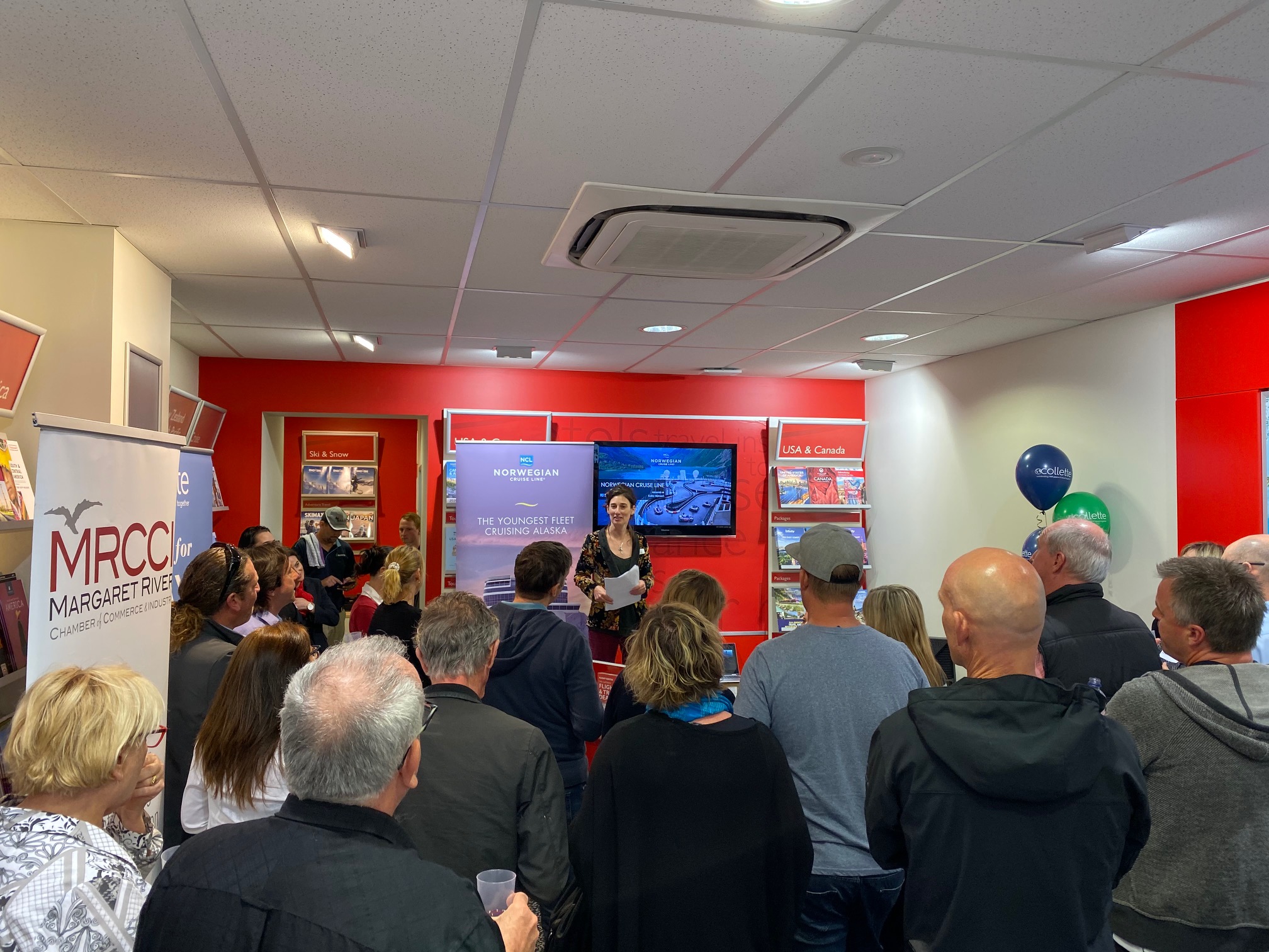 The travel bug is definitely going around after our inspiring sundowner event at Flight Centre last week! Around 40 Margaret River Chamber of Commerce and Industry members filled the Flight Centre Margaret River shop to hear from local travel representatives from Norwegian Cruise Line and Go Collette.